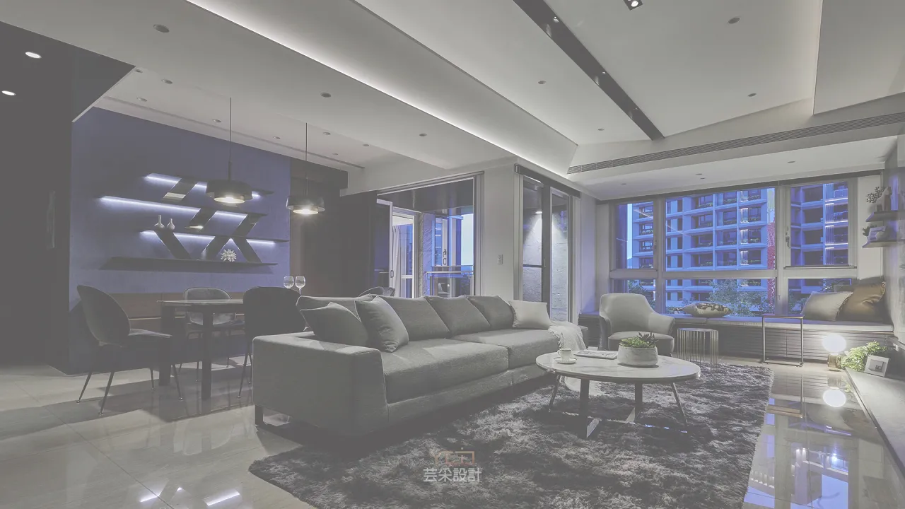 開放的公領域裡,運用線條延伸帶出寬廣視野與張力,造型天花拉出溝槽且嵌入間接光源,營造出漸層視感;木作層板與瑰麗石材搭配金屬飾條、鏡面等現代材質進行組合排列,藉由不同垂直或水平交錯彙集,細膩或粗獷、溫潤或生冷等既衝突且融洽的共生精神,堆疊出層次豐富的場域表情。