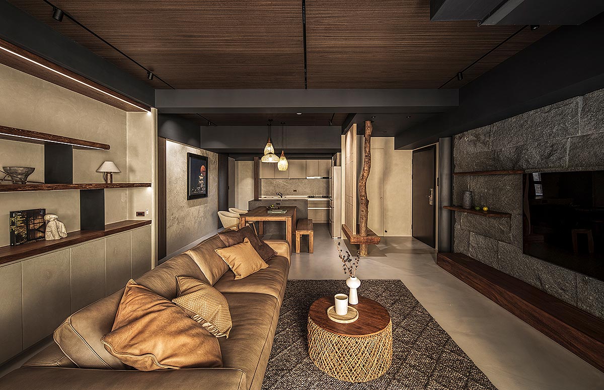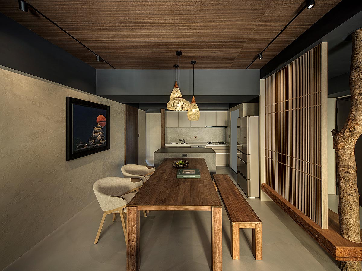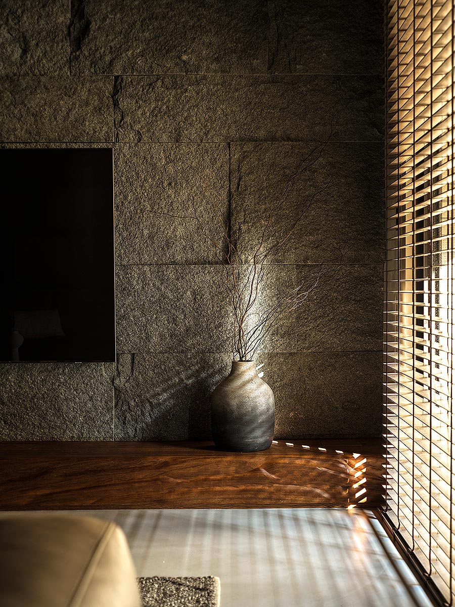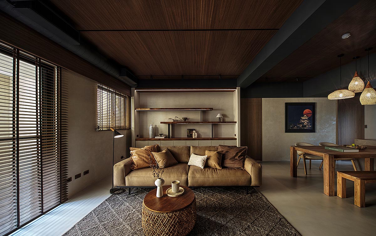 全屋地坪更挑選了 PANDOMO 材質,不僅增強了行走的舒適度,還能使日常清理維護更為便捷。整體空間不過多雕琢,而是著重材質自然紋理和光影變化,流轉的空間動線自然而然,使住客能在純粹的氛圍中倍覺溫馨。此地不只是居所,更是讓人放慢步調並靜心體悟的場域,致使每一次歸來都是最溫柔的片刻。